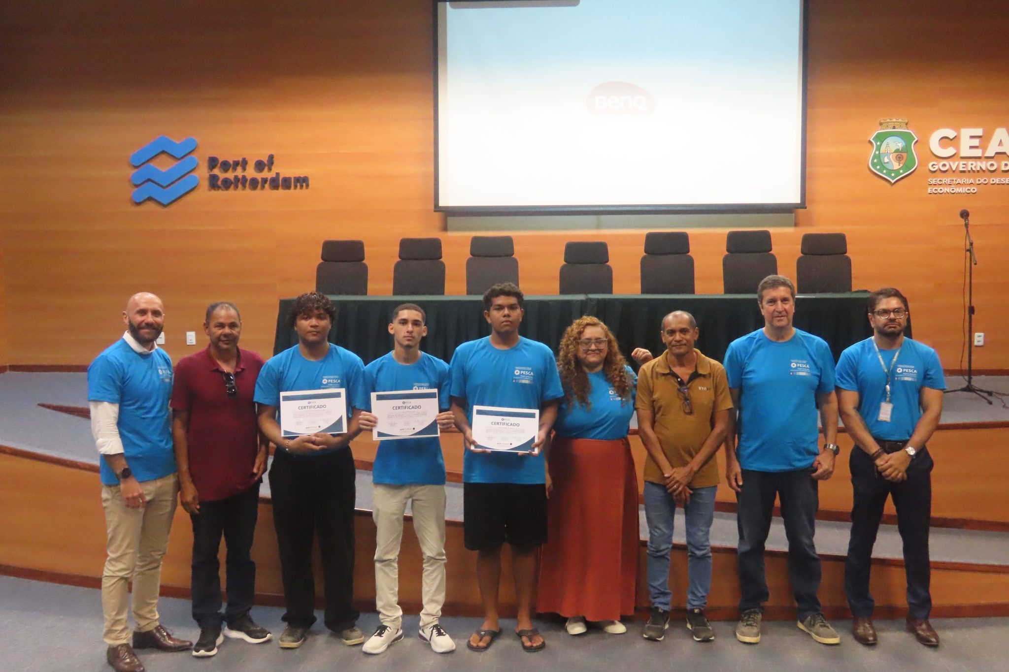 O Complexo do Pecém realizou a entrega dos certificados do Cinepesca 2025, Projeto de Estudos Comunitários em Audiovisual, uma das iniciativas do Programa de Educação Ambiental (PEA). Ao todo, 13 alunos concluíram o curso e foram homenageados durante o evento, realizado nesta terça-feira (24), no auditório do Bloco de Utilidades e Serviços (BUS). Participaram do momento, além de familiares e representantes da comunidade pesqueira, estiveram presentes o vice-presidente de Operações do Complexo do Pecém, Fábio Grandchamp; o gerente de Meio Ambiente, Francisco Wilame; entre outros colaboradores do Complexo.