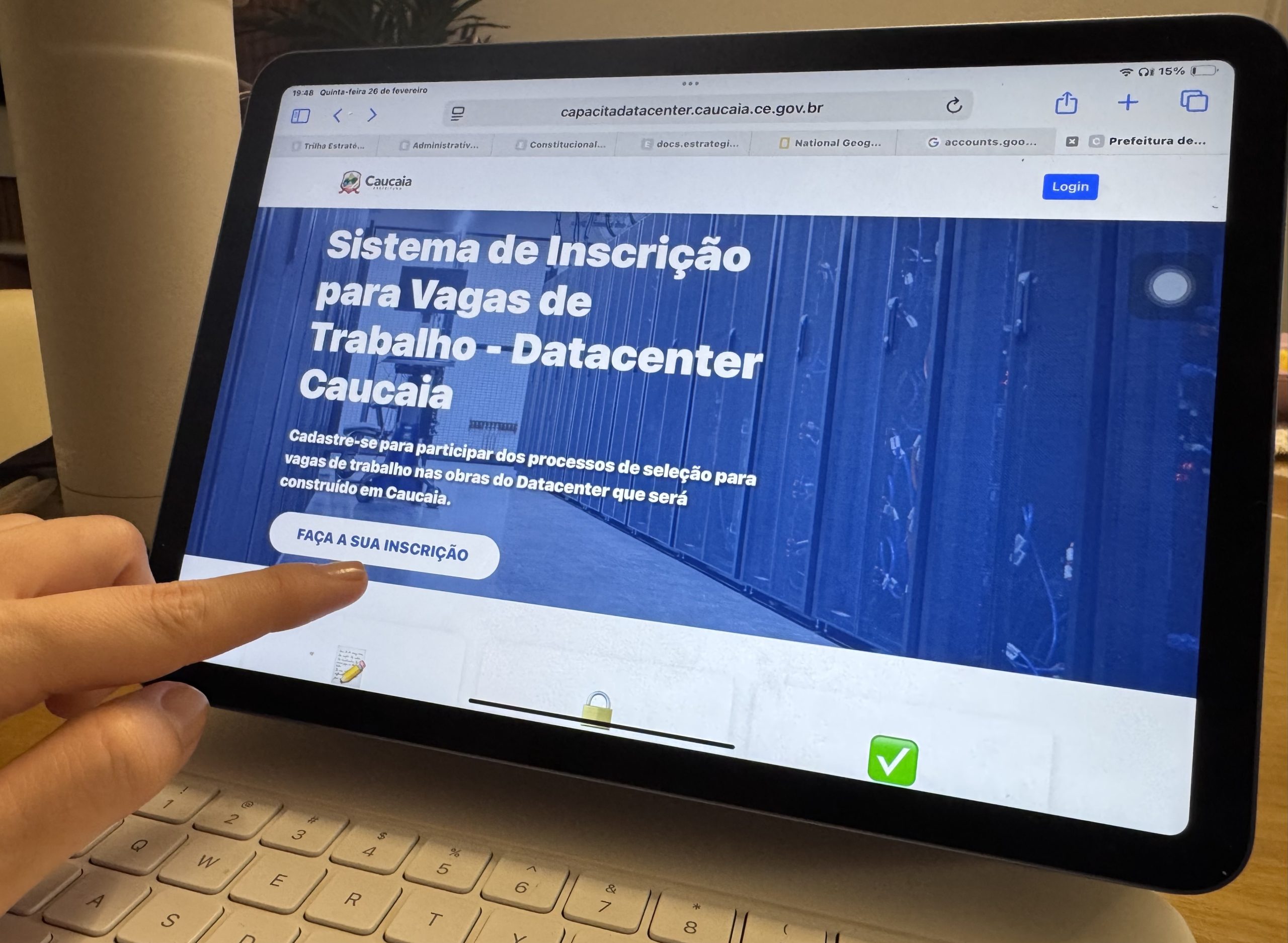 A Prefeitura de Caucaia lançou, nesta quinta-feira (26/2), o portal oficial Capacita Data Center, iniciativa que reúne as vagas de emprego relacionadas à construção do Data Center no município, o maior investimento do Brasil na área. A plataforma já disponibiliza mais de 700 oportunidades de trabalho, com salários que podem chegar a R$ 18 mil.
