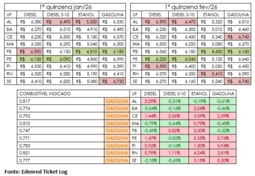 Economia Notícias Nordeste tem alta generalizada nos combustíveis na 1ª quinzena de fevereiro, aponta Edenred Ticket Log